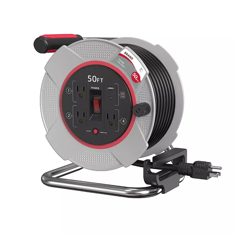 1. Sluit niet meer aan dan het opgegeven aantal watt of ampères op deze 3 uitgangen USB2.4A Plastic koordhaspel 50ft met overbelastingsbeveiliging.